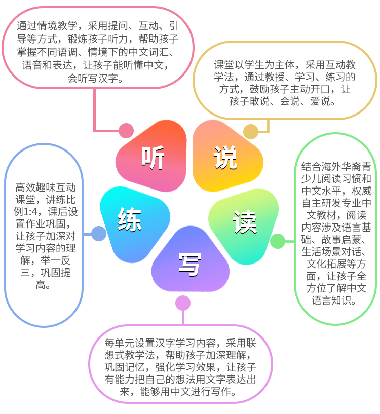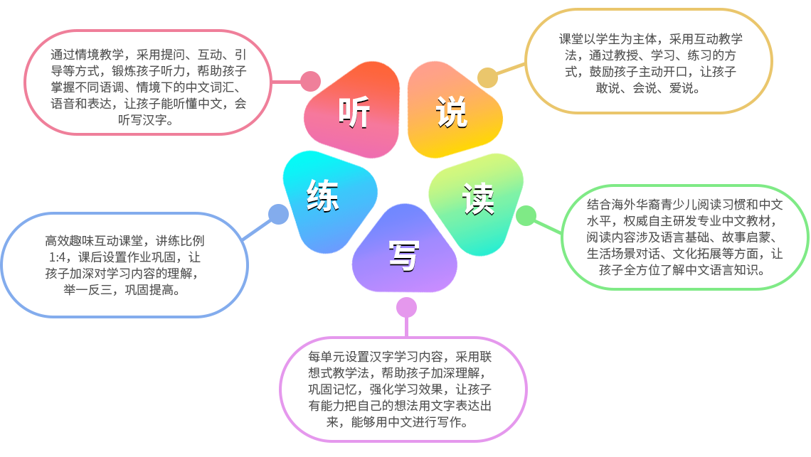 专为海外华裔孩子设计 趣味性与科学性相结合 让孩子快乐学中文 个性化教学 科学定制课程体系 完整教学闭环 专为海外华裔孩子设计 趣味性与科学性相结合 让孩子快乐学中文 个性化教学 科学定制课程体系 完整教学闭环 华裔少儿启蒙课程 基于国家权威中文学习教材,依据儿童自身发展特征并根据孩子的认知、兴趣点以及与其生活相关的紧密程度对学习内容进行科学合理的编排, 建立真实语境,夯实听说读写能力,培养孩子早期语言发展和汉语启蒙思维。 华裔少儿启蒙课程 多环节教学设置 通过专业有效的课程设计,从输入、输出、练习、评估各个环节的合理教学安排,保证复现率,从而保证学习效果。 极强的趣味性 将趣味横生的游戏融入到课件之中,孩子不仅可以在互动游戏中不知不觉地学习中文,同时逻辑思维能力也能得到很好的锻炼。 全新的视觉体验 课程集优秀设计师和制作,将全新技术与美学创新融合,画面色彩丰富、卡通化、贴近自然界的实物,让线上中文课程集互动与趣味于一体。 华裔少儿启蒙课程设置及内容 课程主要锻炼孩子听说读写能力,夯实基础。课程共包括,level1、level2、level3、level4四个级别,分别从话题、汉字、词汇、句型四个方面进行学习。 华裔少儿启蒙中文课程-宝宝抓螃蟹 宝宝抓螃蟹: 这一板块旨在通过读音能准确的匹配对应的汉字,建立字音和字形之间的联系,增强语感。宝宝爱写字:这一板块旨在通过孩子对汉字的书写,掌握汉字基本的笔画和顺序,加深对汉字的记忆,使词汇、语句更加熟悉。宝宝来架桥:这一板块旨通过将单个字到词语的搭建。通过架桥的方式将字和词串联起来,既提升了学生对字的理解,同时还能通过有趣的方式扩展词汇量。宝宝看一看:这一板块旨在通过将单个的字或词组成完成连贯的句子,能够增强学生的逻辑能力和分辨能力,同时也可以锻炼语言的表达能力。整体从字、词、句、段、偏层层递进的关系,让孩子循序渐进式的去学习中文。 华裔青少课程 华裔青少课程教材基于中国教育部制定的部编版教材和国家汉办指定教材,设有初级、中级、高级三个级别,满足HSK和YCT国际汉语水平考试要求,兼顾了华裔孩子的特殊语言环境特点,同时遵循美国核心州标准(CCSS)与国际阅读能力发展研究(PIRLS),全方位培养孩子的中文语言能力和阅读理解能力。 华裔青少课程特点 科学的课程体系 课程设有初级、中级、高级三大级别,每个级别分为4个等级一共12个等级,帮助不同语言水平的孩子搭建语言基础框架,培养独立思考能力和判断能力。 最具权威的中文教材 基于中国教育部制定部编版教材和国家汉办指定教材,满足HSK、YCT国际汉语水平考试。 完整的学习闭环 课程从听、说、读、写、练五个方面精心打造完整的教学闭环,不浪费孩子学习的每一分钟。 丰富有趣的课程系列 练习汉字 古诗小乐园 认识动物 华裔青少课程设置及内容 初级中级高级 多环节的课堂设置,保障孩子学习效果 1. 科学测评体验课 让孩子真实体验在线中文课堂,精准定位孩子中文水平。 2. 个性化互动课堂 启发式情境教学模式,让孩子全情投入,通过语言交流、感官及肢体的互动,轻松在线学中文。 3. 课后练习 设置课后补充练习体系,老师一对一作业辅导答疑,帮助孩子巩固知识,查漏补缺。 4. 学习报告反馈 智能学习报告,全程课堂回放,孩子的点滴进步都看得见。 5. 等级测试 科学梯度进阶水平体系表,可以帮助家长对照了解孩子的中文学习提升进度。每个级别学习结束后,一级一节测试课,增强孩子学习目标感。 听、说、读、写、练全方位教学 免费领取体验课 免费领取价值21美金体验课 国家/地区 A B C D E F G H I J K L M N O P Q R S T U V W X Y Z search no result 立即领取 点击立即领取按钮, 即表示您同意我们的服务条款和隐私保护。 确认